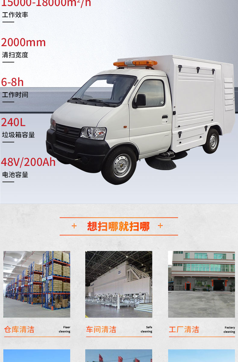 宏瑞達新能源電動清掃車采用滾刷五聯(lián)動式清掃,更大的增加了清掃效率和清掃潔凈度,清掃寬度可達2280mm,可以連續(xù)工作6-8小時,特別適合煤礦、水泥廠、雕刻廠、面粉廠、建材廠、金屬冶煉廠、工廠車間、商場、車站、廣場公園、景區(qū)等場所使用。