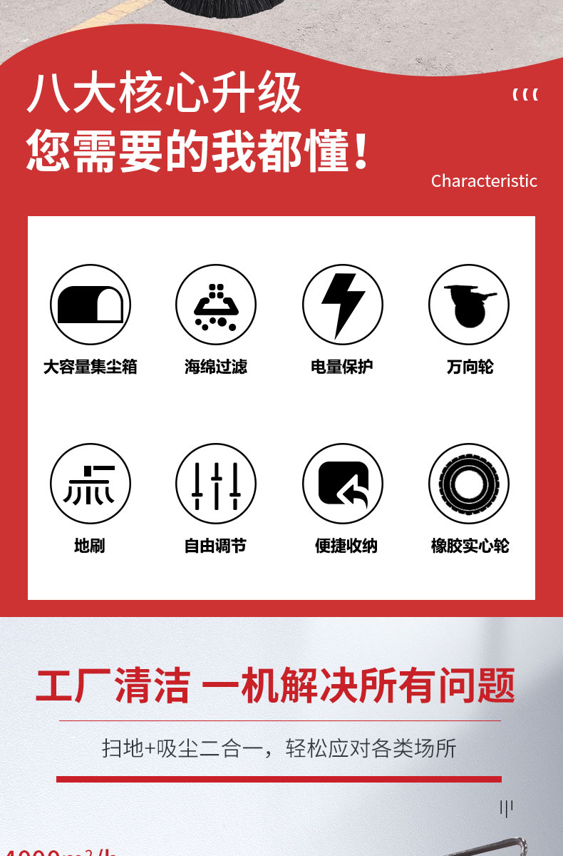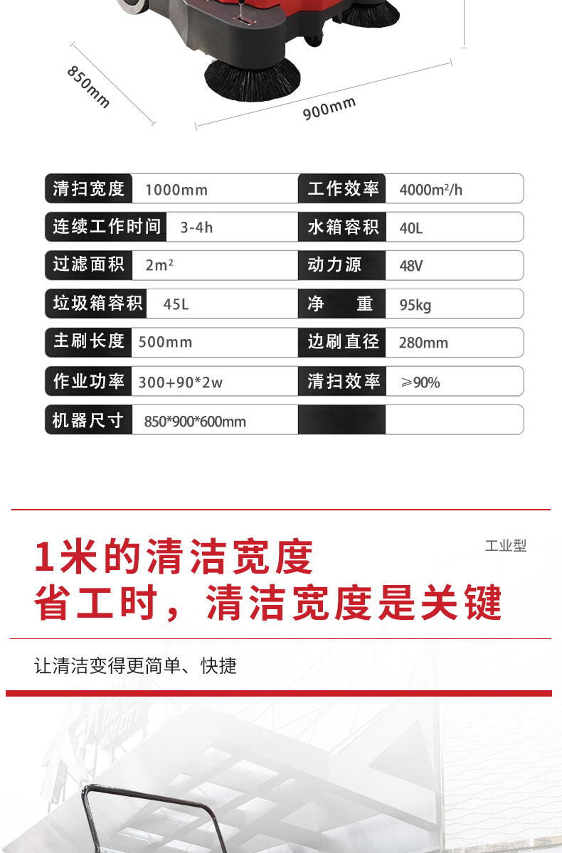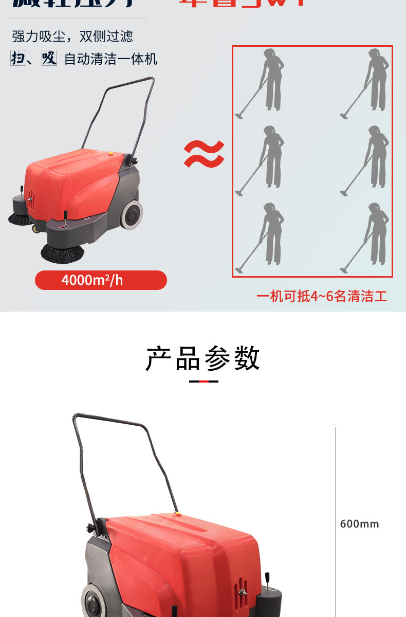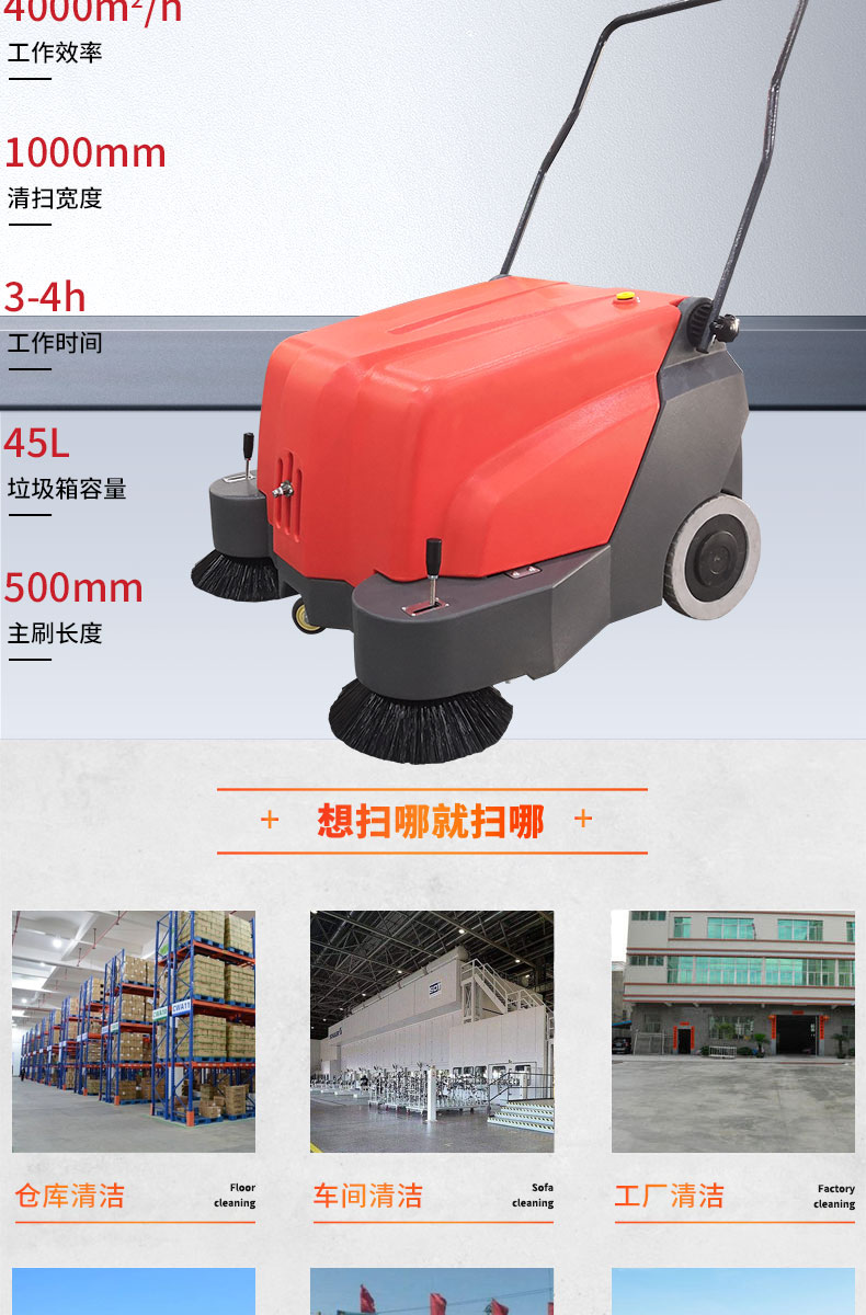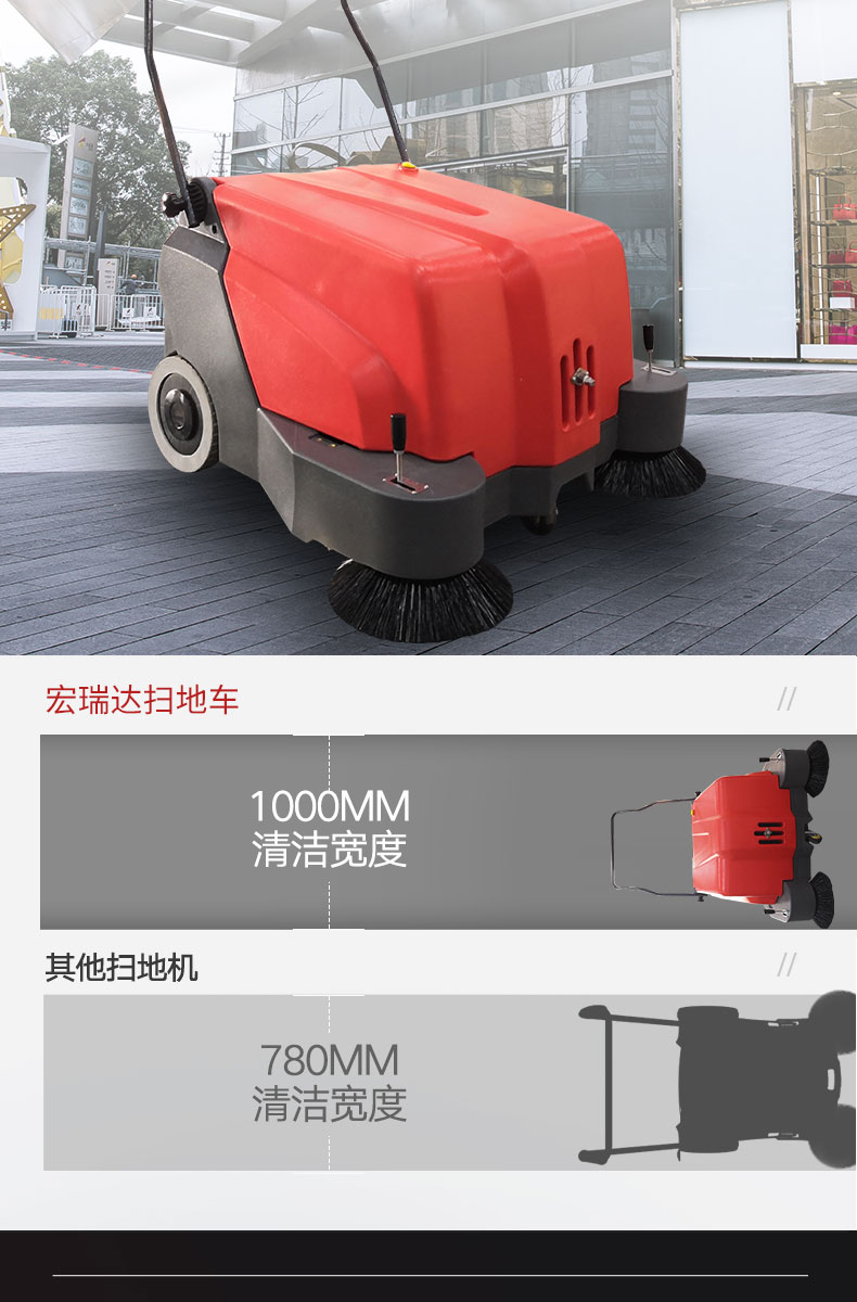 HRD-1000手推式電動掃地車精巧輕便,清掃寬度為1000mm,可連續(xù)工作3-4個小時,灰塵 石子 落葉 煙頭煙灰 木屑 瓜果等一掃而凈,特別適合煤礦、水泥廠、雕刻廠、面粉廠、建材廠、金屬冶煉廠、工廠車間、商場、車站、學校、機場外圍、廣場公園、景區(qū)等場所使用。