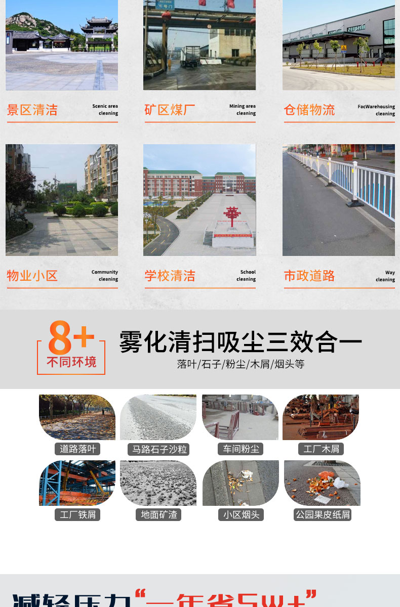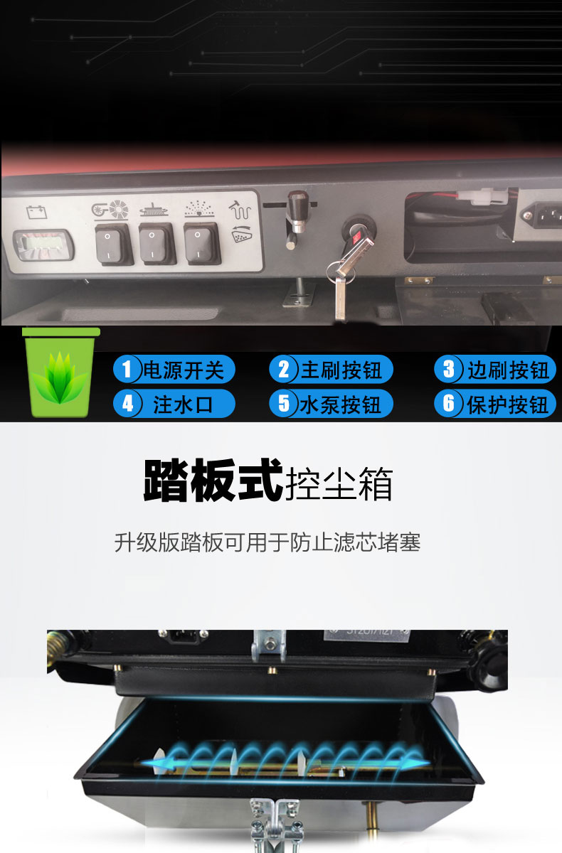 - HRD-1450半封閉駕駛式掃地車160L大容量水箱,轉彎半徑小,方便靈活,清掃寬度可達1450mm,可連續(xù)工作4-5小時,灰塵 石子 落葉 煙頭煙灰 木屑 瓜果等一掃而凈,特別適合煤礦、水泥廠、雕刻廠、面粉廠、建材廠、金屬冶煉廠、工廠車間、商場、車站、學校、機場外圍、廣場公園、景區(qū)等場所使用。