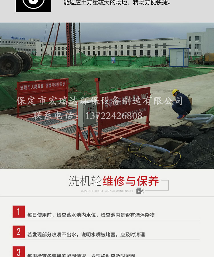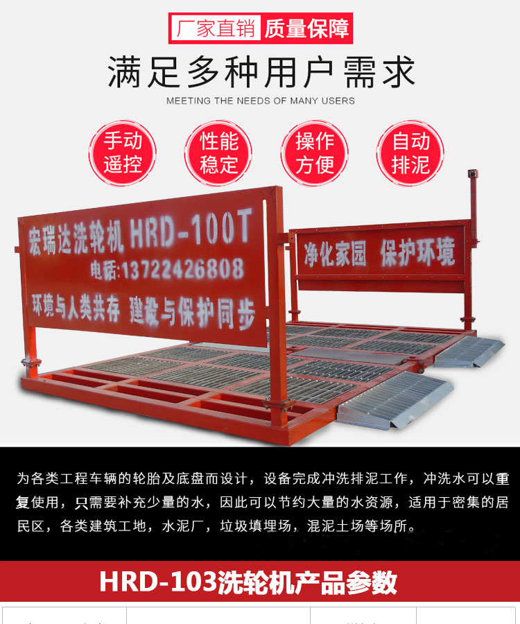 HRD-103工程車(chē)洗輪機(jī)可自動(dòng)完成沖洗、排泥的工作,沖洗用水可重復(fù)使用,100T以下各類(lèi)工程車(chē)和垃圾運(yùn)輸車(chē)都可以承載,有自動(dòng)、遙控和手動(dòng)三種控制,特別適用于各類(lèi)建筑工地、礦業(yè)工場(chǎng)、水泥制品廠(chǎng)、煤礦、發(fā)電廠(chǎng)、垃圾填埋廠(chǎng)、高檔社區(qū)等場(chǎng)所的進(jìn)出車(chē)輛清洗,從而達(dá)到無(wú)粉塵污染的優(yōu)良工程,二期安裝運(yùn)輸方便,可適用各種工地頻繁轉(zhuǎn)場(chǎng)的需要。