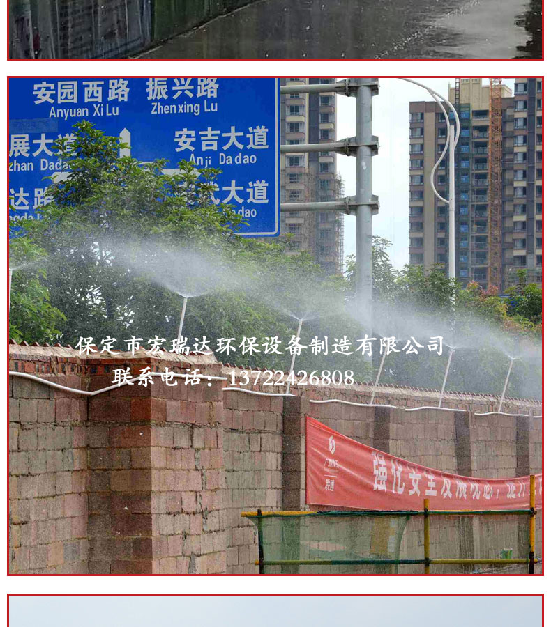 - 圍擋噴淋系統(tǒng)的構(gòu)成是由PPR水管、直通、三通、彎頭等組成水流通的管路,水箱提供噴淋水源,多級(jí)泵給予輸送動(dòng)力,電腦控制器控制整個(gè)系統(tǒng)。