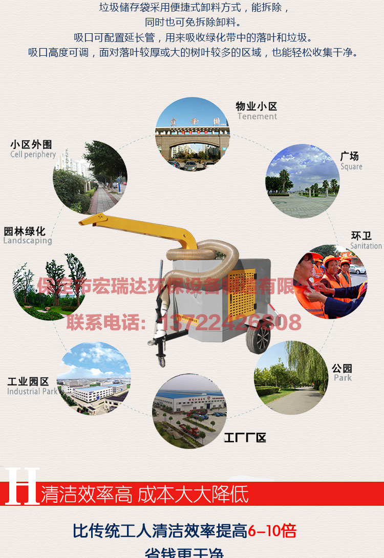 - 樹葉收集器為秋季集中落葉時應急清理設計,自帶動力作業(yè),設計原理是吸入、粉碎、輸出。將大量的樹葉快速的裝車轉運,降低環(huán)衛(wèi)工人 勞動強度,提高樹葉收集速度。